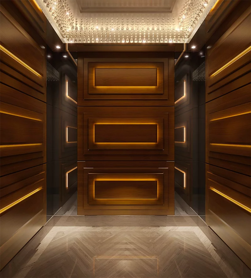 Những vật liệu này được sử dụng để trang trí và làm tăng độ sáng bên trong cabin thang máy, tạo thêm một không gian sang trọng, tinh tế.